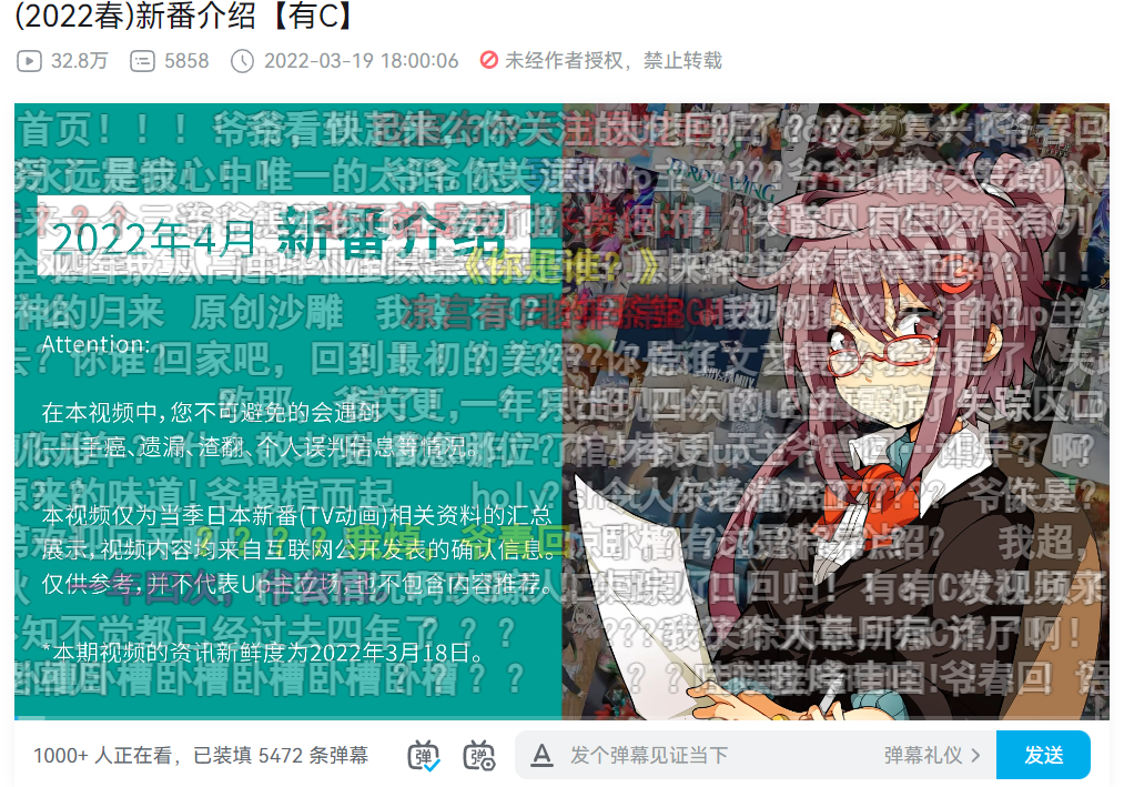 2018年3月16日,发表“(YuC)[2018春]新番介绍”(av20828860)