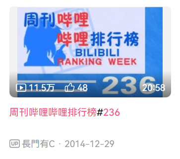 乃至因为代投过“周刊哔哩哔哩排行榜 #236”(av1839423)