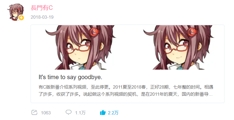 致使很多人都误认为 长门有C 就是B站官方的番剧导视制作者