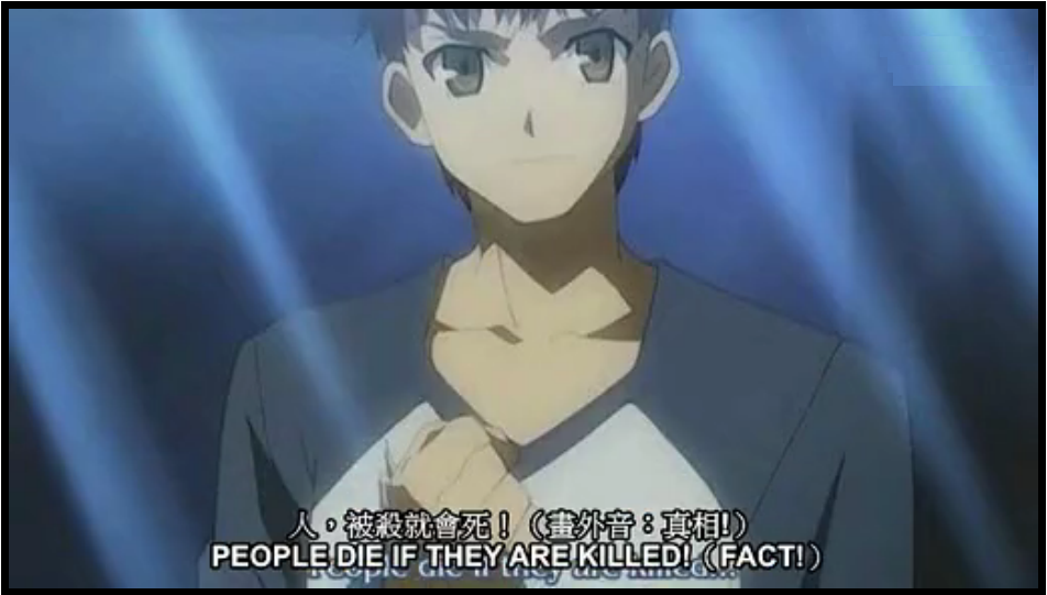 “士郎是个糟糕透顶的男主角,除了这句经典而鼓舞人心的台词:People die if they are killed!(人被杀,就会死啊!)”