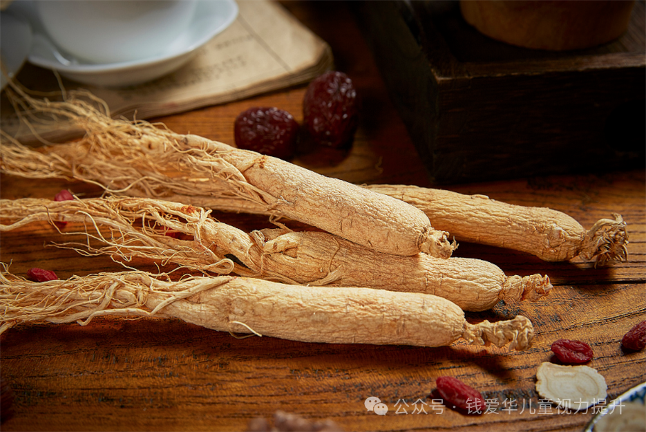 “人参益气”意思是人参可通过补气,增加调节眼睛的眼肌的力量,矫正眼睛的歪斜。