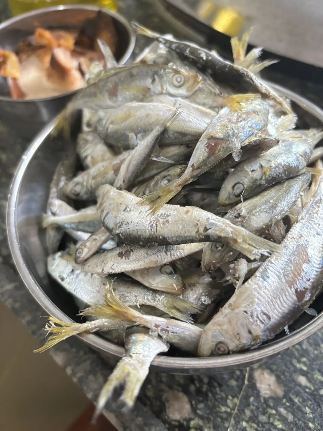 昨天邻居爷爷送来了一盘海鱼,据隔壁阿姨说,这些海鱼是自己去海里捞的。