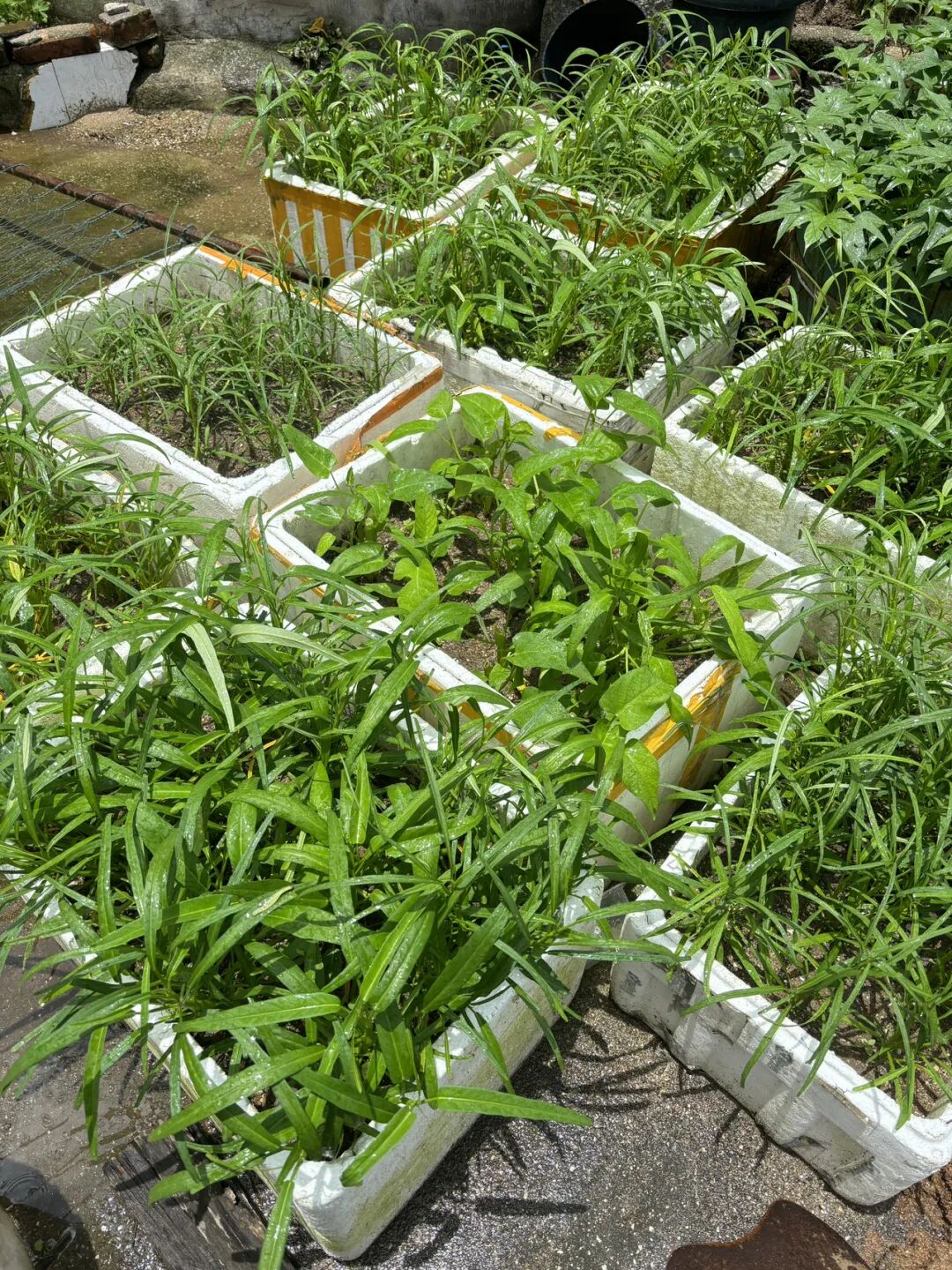 奶奶的空心菜,从她刚种下到现在能吃,两个月的时间,她真的好认真地种着她的菜。没想到摘下第一把就给了我们~