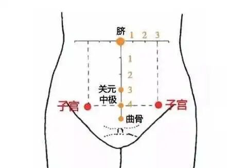 艾灸推荐穴位:子宫穴+下巨虚;中极+三阴交;关元穴。