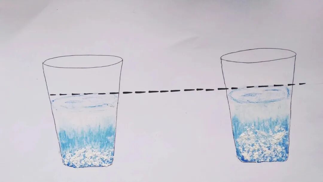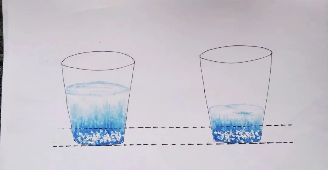 这次是两杯糖量相同的水,左边水多,右边水少,所以后者血糖高。