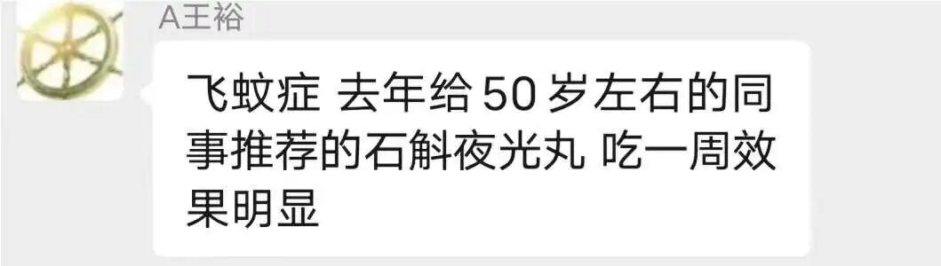 第二个方法,中成药《石斛夜光丸》。有人吃了一周左右的石斛夜光丸,飞蚊症改善明显,如果兼有眼睛方面的其他症状,比如:眼睛干涩,眼睛疲劳等,石斛夜光丸就更适合了。