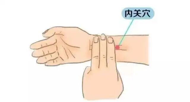 1、按揉“内关穴”。内关穴是调节全身气机升降的一个开关,平时气机失衡,打嗝、呕吐都可以按揉。用大拇指或者食指关节点按,左右各100下就会有效果了。