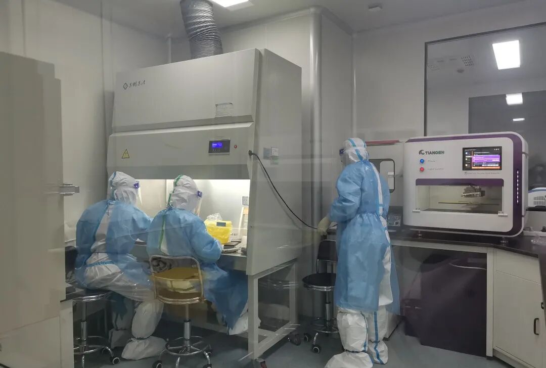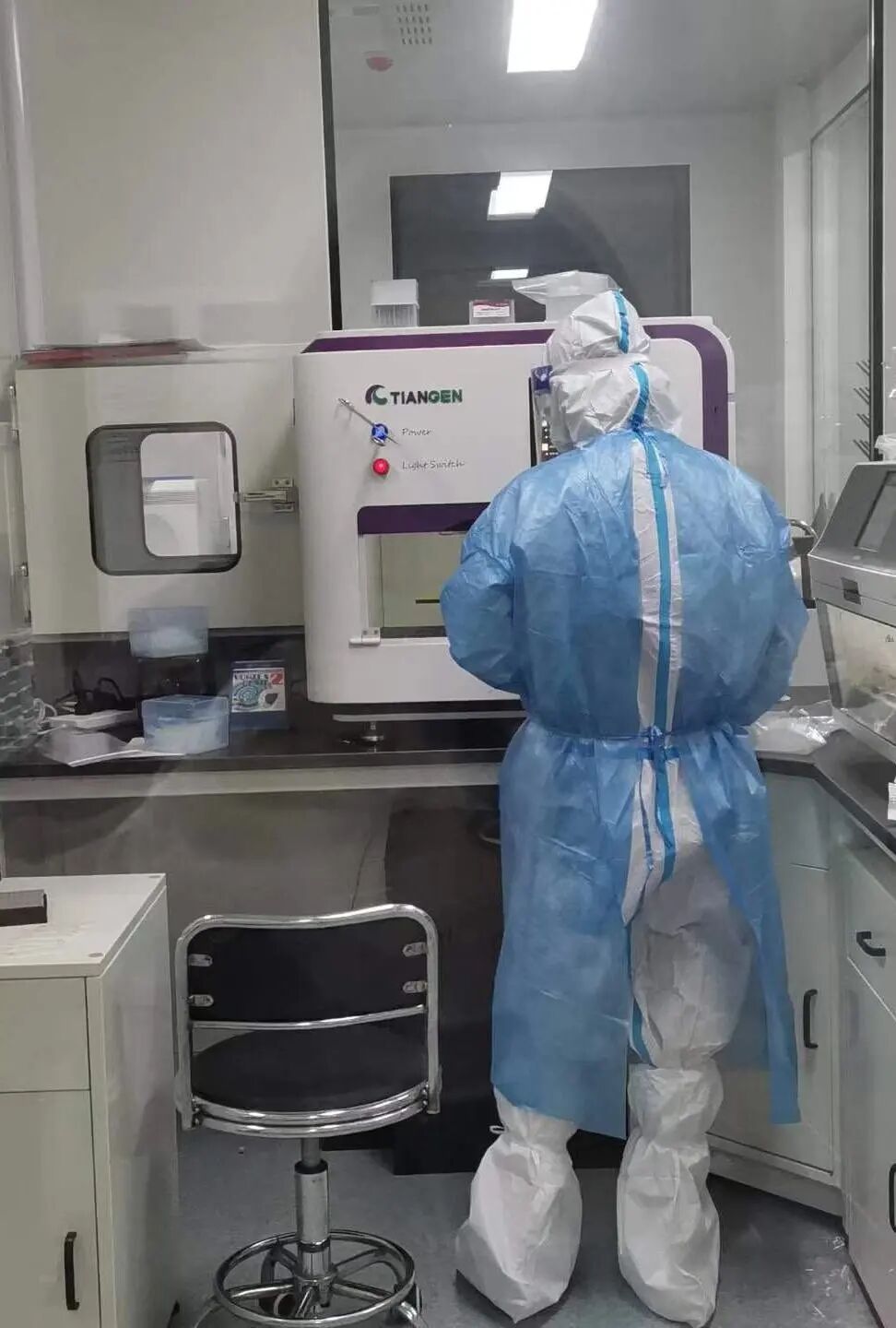 检验人员穿着密不透风的层层防护服,在实验室的无声世界里有条不紊的对每一份标本认真进行检测,克服人员短缺的硬伤,最多日检测样本1900个,18000余人,完成一轮检测需要4-5个小时,每天要开展3轮检测,她们全天上岗,24小时连轴转,确保从接收、核对样本、开展检测到报告结果出具全程不超过24小时。一夜无眠成了工作常态,为抗击疫情提供了有力保障。