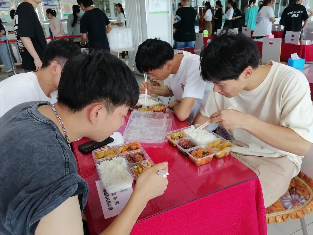 根据疫情防控要求,教学管理科安排专人查验学生健康码和《个人健康信息承诺书》,核实核酸检测及疫苗接种情况,确认全员没有问题的情况下,由迎新学生志愿者引导,学生来到宽敞明亮的的教室、干净整洁的宿舍,安置好行李后,到餐厅美美的享受了营养丰富、荤素搭配的套餐,学生们一致表示,第一眼就爱上了这里!