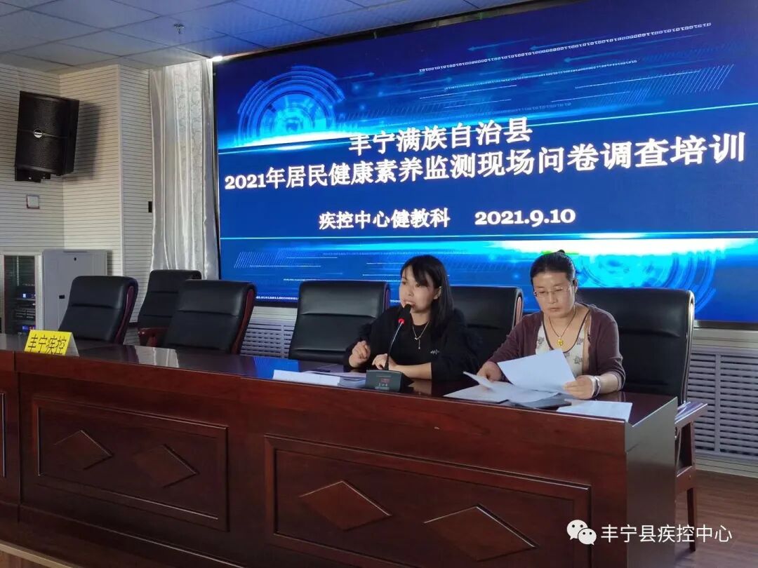 9月10日,2021年居民健康素养监测现场问卷调查培训班在丰宁疾控中心举行。健康促进办侯庆,疾控中心副主任韩利君,各乡镇卫生院、社区门诊负责健康素养监测工作的负责人以及居民健康素养监测调查员共60余人参加了本次培训。