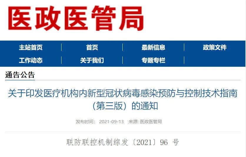 为进一步做好医疗机构内新型冠状病毒感染(以下简称新冠病毒感染)的预防与控制工作,最大限度降低感染发生,在《医疗机构内新型冠状病毒感染预防与控制技术指南(第二版)》基础上,修订形成《医疗机构内新型冠状病毒感染预防与控制技术指南(第三版)》。本技术指南适用于各级各类医疗机构,集中隔离医学观察场所可参考执行。