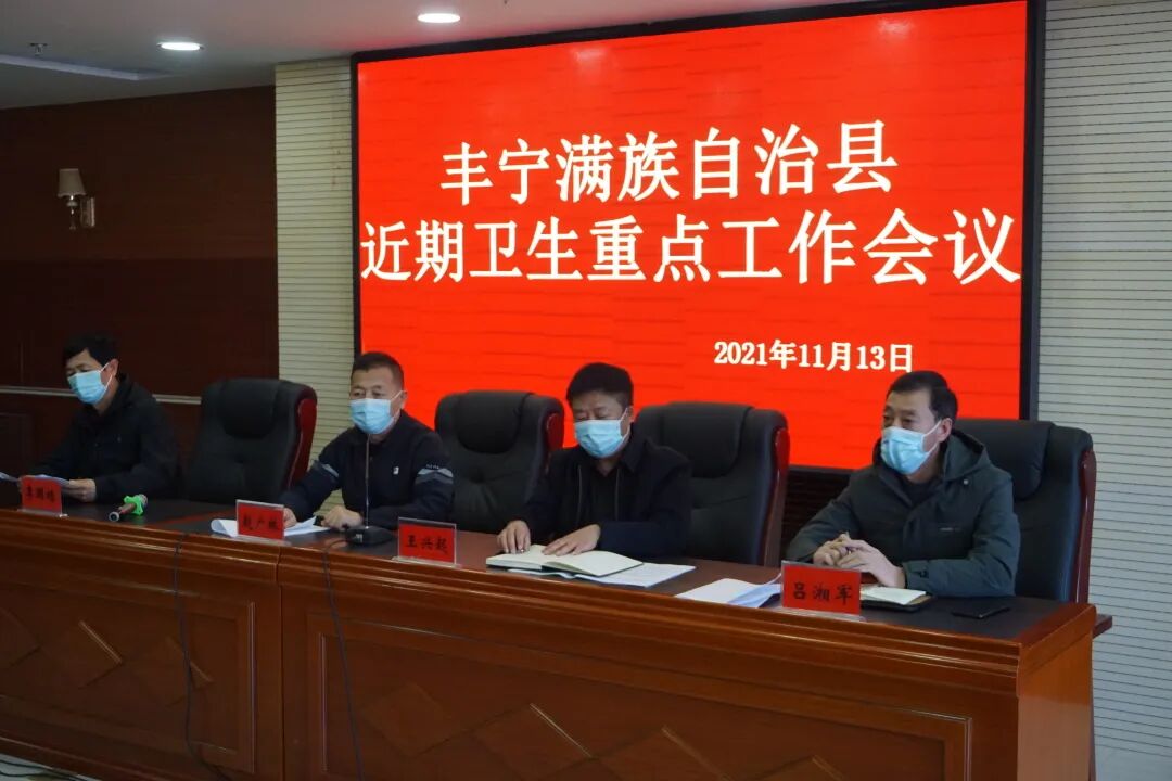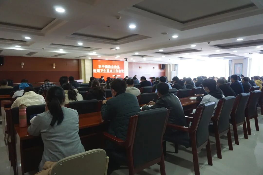 2021年11月13日11:00,丰宁卫健局在县医院行政中心二楼会议室召开近期卫生重点工作会议。卫健局班子成员,局机关各科室主要负责人、县直单位主要负责同志、县、中两院院长、乡镇卫生院院长参会。