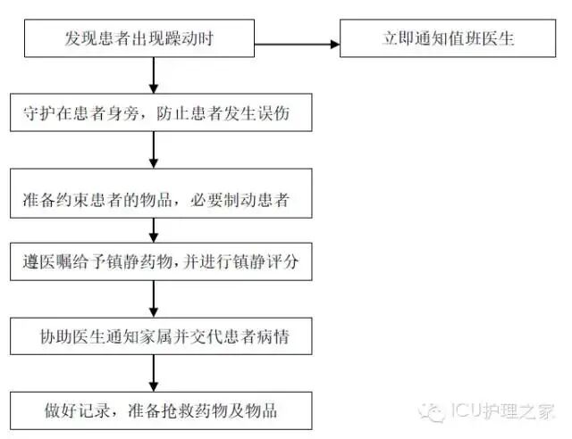 1、当发现患者突然发生躁动,护士应守护在床旁,立即说服并制动约束患者,防止发生意外,并通知医生。