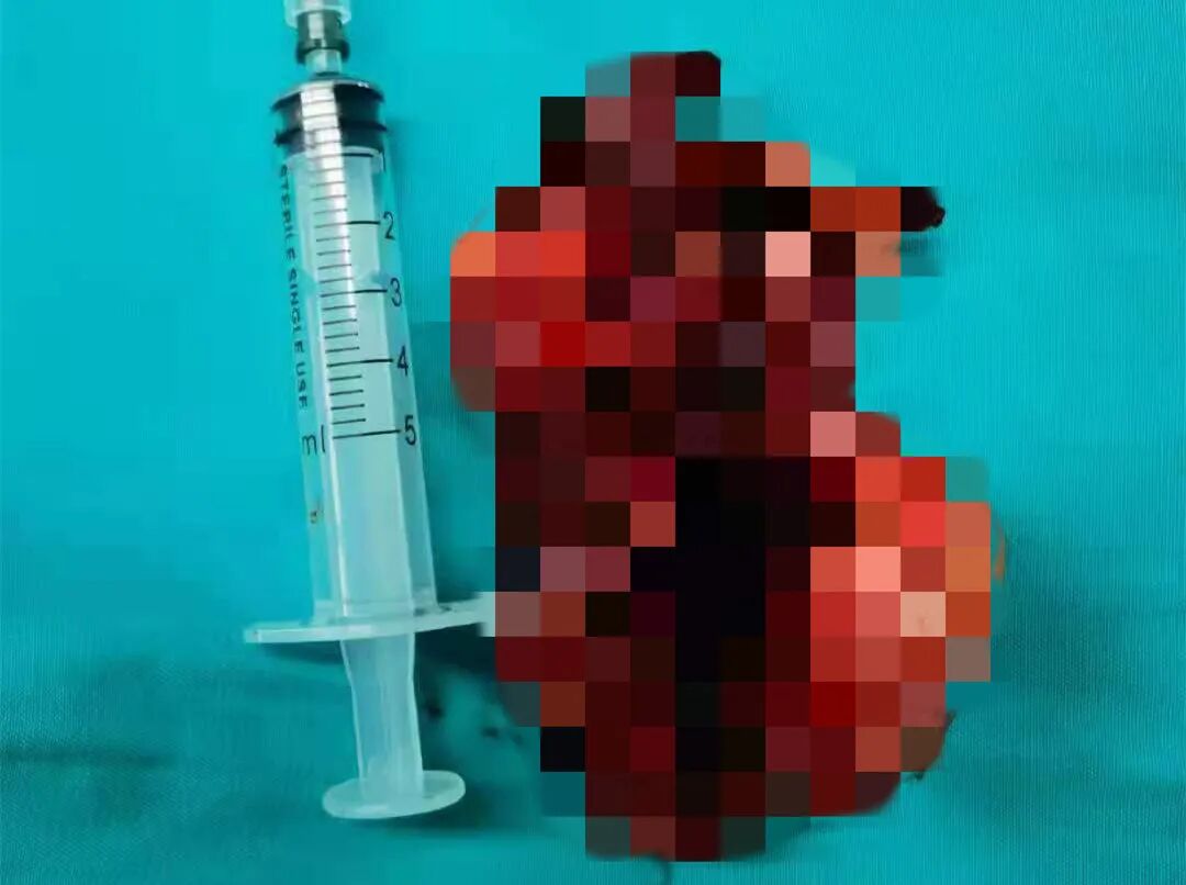 在医生的精细操作下,肿瘤完整切除,幸运的是,病理显示,该肿物为良性的平滑肌瘤。