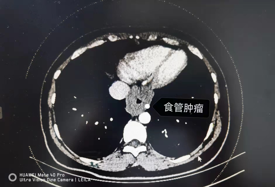 家人感觉不对赶忙带她在当地医院检查,CT发现食管下段异常增粗,当时怀疑是恶性肿瘤,后来又在另一家医院检查胃镜,结果没想到的是,胃镜的镜身根本就无法通过病变的狭窄处。