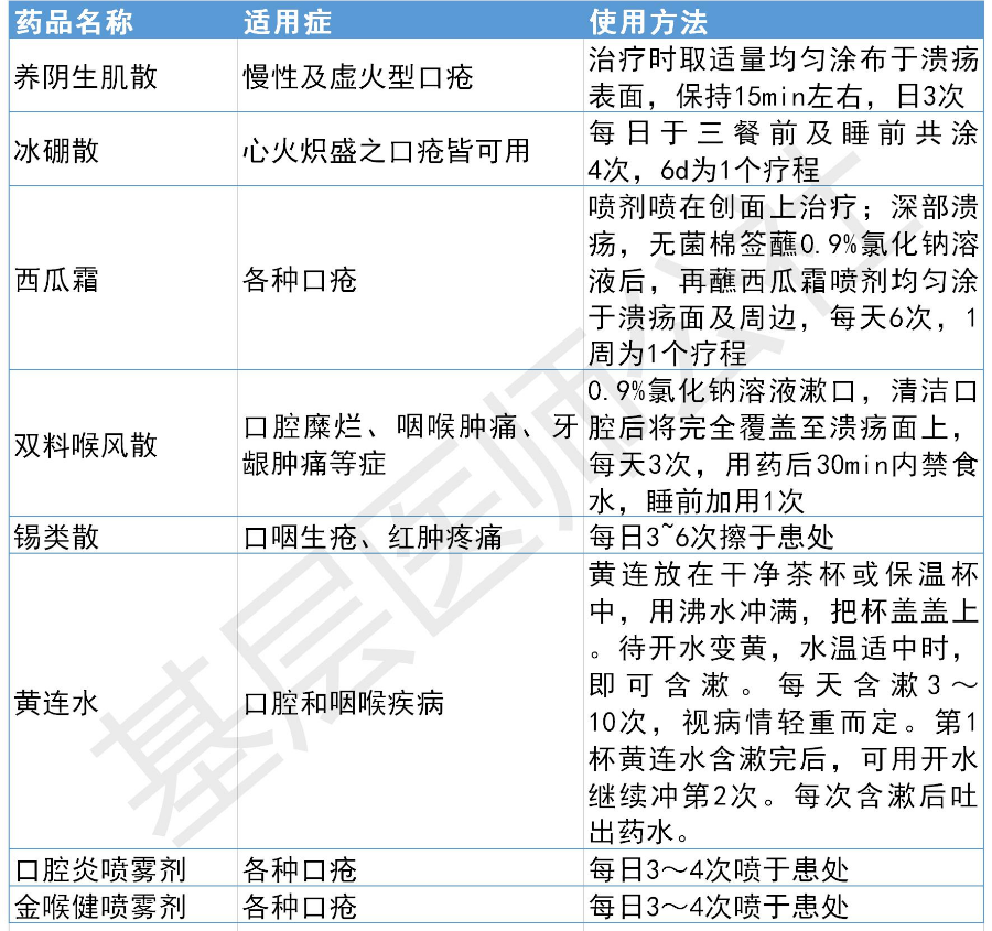 在治疗过程中,结合患者需求,通常会配备一些外用药进行治疗,下面这张表综合了常见的中成药,大家可以收藏起来。