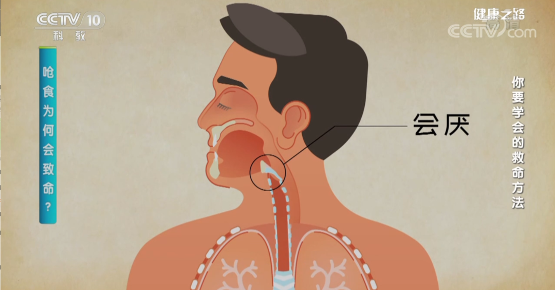 在我们做吞咽动作的时候,会厌会盖住气管的开口,这样就保证食物进入食管,而不会误入气管。在某些特殊的情况下,比如进食的时候大声说笑,已经关上的会厌会突然打开,食物就会误入气管。如果食物完全堵塞了气管,会导致患者不能呼吸,通常表现为双手扼颈,面色青紫,无法发音和咳嗽。