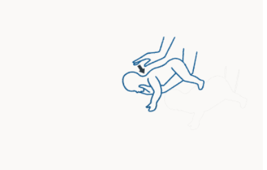 一只手托推住其胸,使其面部朝下,头低于臀位,另一只手拍打其背部中央。