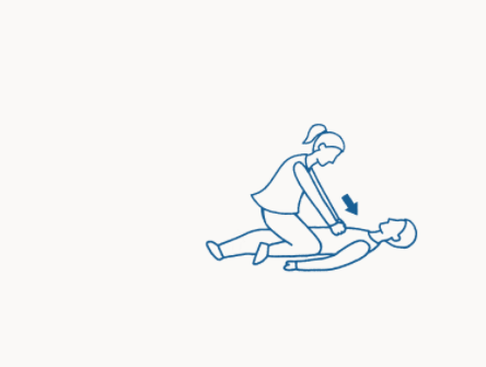 两腿分开,骑跨在患者腰部,一手握拳,双臂伸直,用力向前向下推压上腹部。