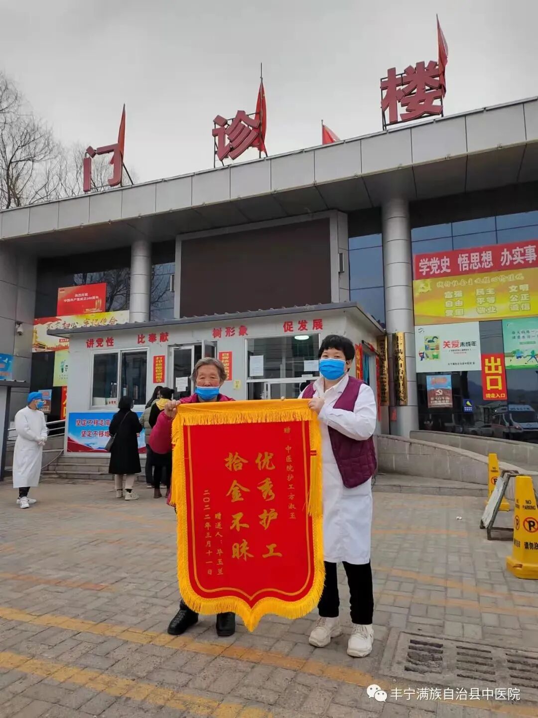 丰宁中医院科护工方淑玉在送检验标本的路上,在收费窗口对面的地上发现一沓现金,她赶紧询问在场的患者及家属,他们均表示不是自己丢失的。由于科室内还有工作,她只好暂时把钱拿回科室,通过王丽娟护士交到门诊客服。后经过多方查找,找到了失主,并和失主大娘确认丢失金额,确认无误后返还给她。当失主接过失而复得的现金后,连连道谢,并对护工方淑玉拾金不昧的高尚品质和丰宁中医院护士、警卫室民警的接力帮助表示称赞。失主多次提出要以现金表示感谢,都被她婉言谢绝了。大娘十分感动,笑着说道:“等我给你们买果子吃!中医院的医护真好!”下午又送来一面写着“拾金不昧、优秀护工”的锦旗再次表示感激之情。