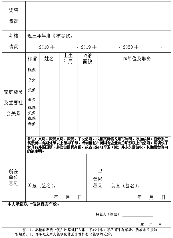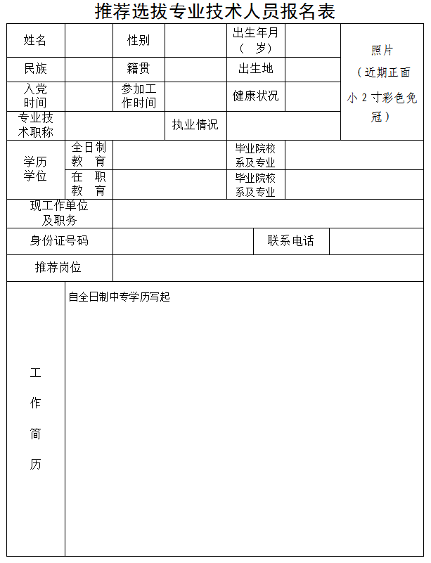 报名方式∶符合条件的人员根据个人意愿,向所在单位提出申请,按要求如实填写《推荐选拔专业技术人员报名表》(以下简称《报名表》),经所在单位同意后,由单位负责人集中报送卫健局人事科教股,推荐人数不限。