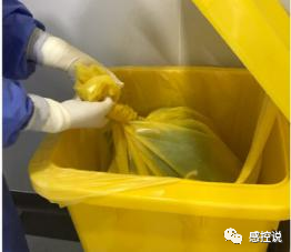 9、投入高度危险废物桶 1000mg/L 含氯消毒液 再次喷洒桶盖方能转运