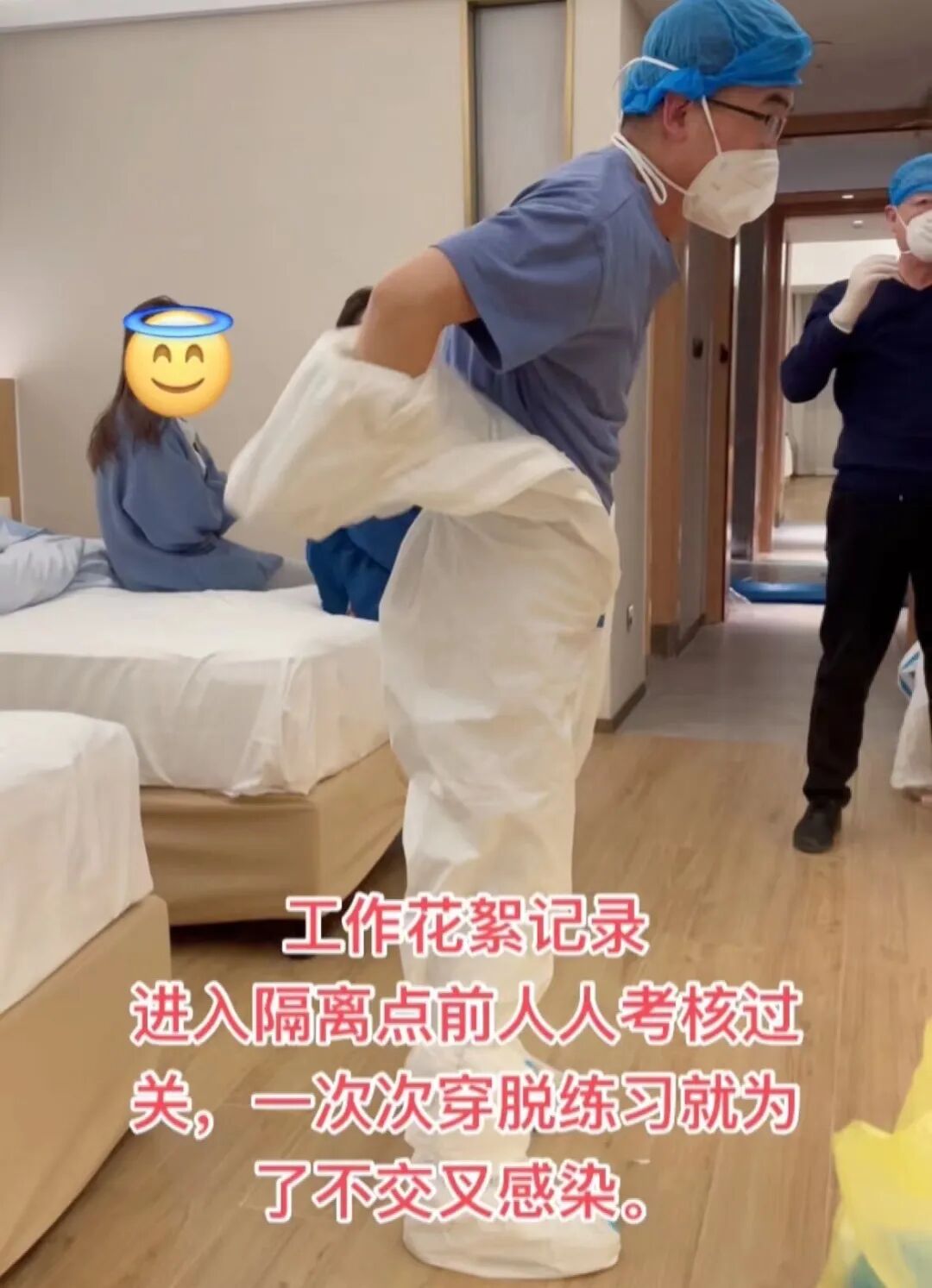 在我们心中就只有一个目标,那就是圆满完成梦马隔离点的工作任务,安全返岗。为了保证不负院领导的嘱托,我们全体工作人员在穿脱防护用品考核合格的基础上,在院感专员的不断督导下,苦练穿脱防护用品技能,杜绝交叉感染风险隐患,严格遵守各项操作技能,提高院感防控意识,时刻保持高度警惕。我们想说:“请领导放心!请同事放心!请家人放心!”