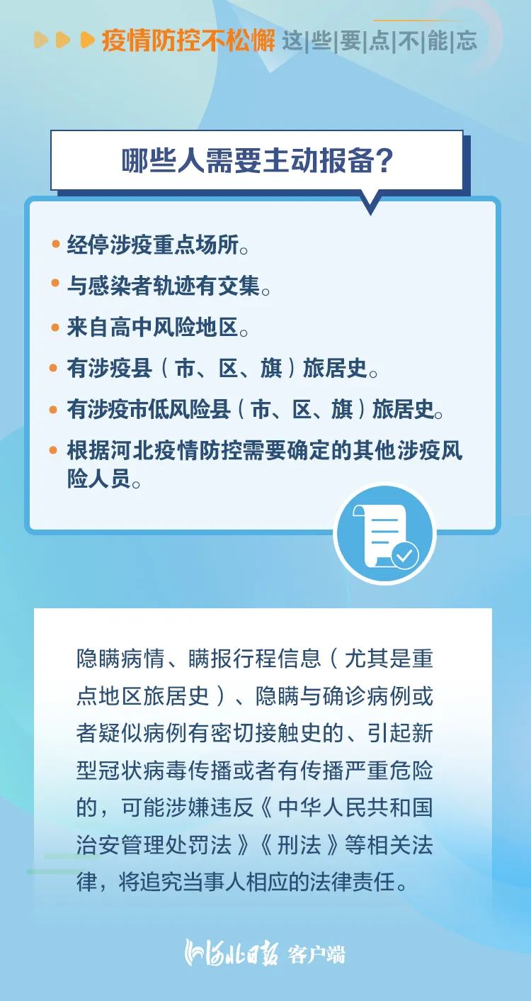 来冀返冀主动报备、日常做好个人防护、主动配合核酸检测……疫情要防住,这些要点不能忘↓↓↓