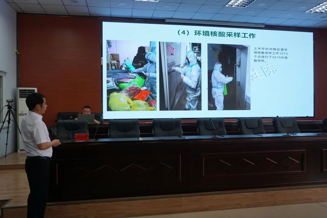 疾控、财务、支付中心、基层等股室分别通报了上半年各单位工作完成情况。