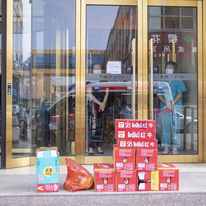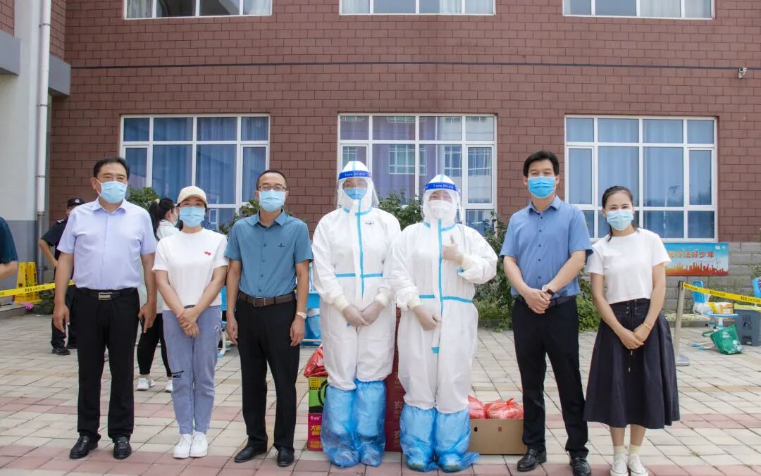 虽已立秋,酷热依旧难耐,最高气温达30℃,但是坚守在疫情防控一线的医护人员仍全副武装地忙碌着。他们采样、检测、疏导、保障,使现场秩序井然。院领导为他们送上矿泉水、方便面、火腿肠等物品。