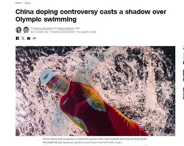 毕竟,一周前,西方媒体就开始集体炒作中国运动员“服药”事件。