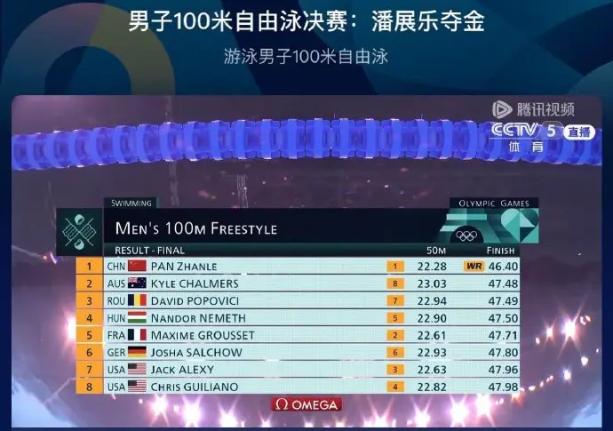 他清清白白地拿下了含金量如此之高的100米自由泳,也赢得了所有人的尊敬。