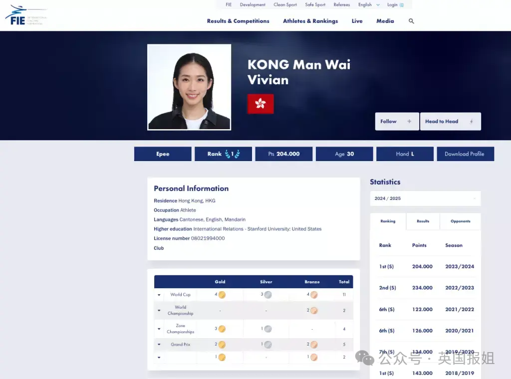 随后,她的状态越来越好,凭借绝佳大赛成绩压过韩国姜荣美,成为“世界第一剑”,并开始长期保持这个位置。