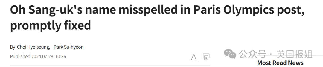 韩国网友当场进入暴怒模式,但没想到这事儿还没解决,奥运官方账号又捅了篓子——他们在发布的帖子中拼错了韩国首金、男子佩剑冠军吴尚旭的名字。