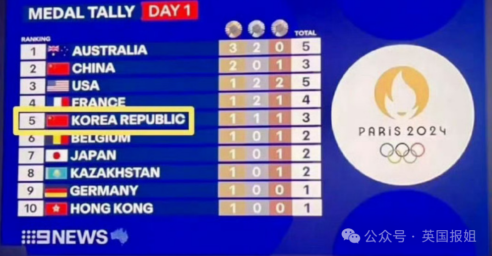 这股“松弛感”也传染到了澳大利亚,那边的电视制作人员紧随其后,在电视台的转播中直接给韩国安上了中国国旗。