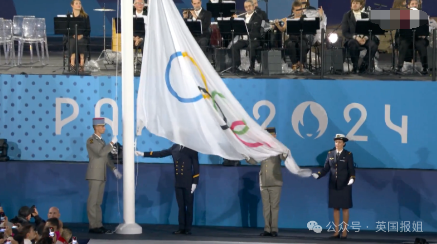 在一片音乐声中,全球观众看完了完整的升旗仪式,不知道现场忍住尴尬的观众们此刻是什么心境。