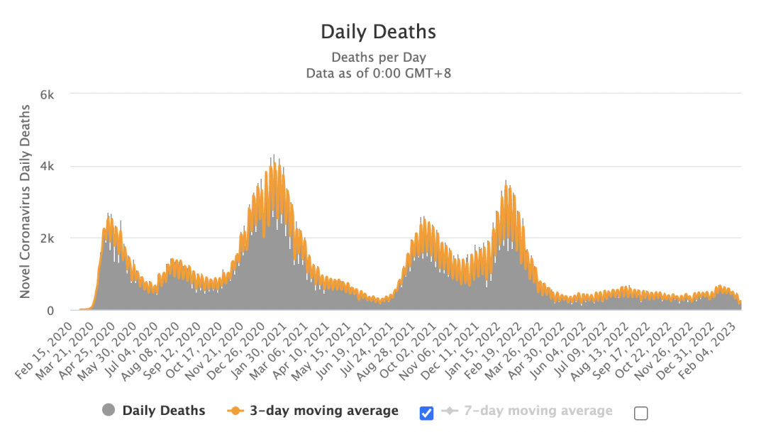 新加坡去年 10~11 月的 XBB 疫情高峰,带来的死亡人数波峰并没有那么明显。