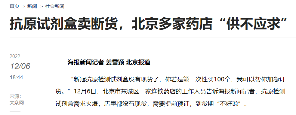 各地陆续推行「非必要不做核酸」后,焦虑中的人们囤药的同时也囤了一堆抗原,以至于各大药店和网店纷纷宣告缺货。