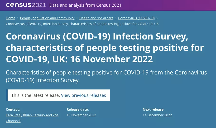 [1]https://www.ons.gov.uk/peoplepopulationandcommunity/healthandsocialcare/conditionsanddiseases/bulletins/coronaviruscovid19infectionsurveycharacteristicsofpeopletestingpositiveforcovid19uk/16november2022