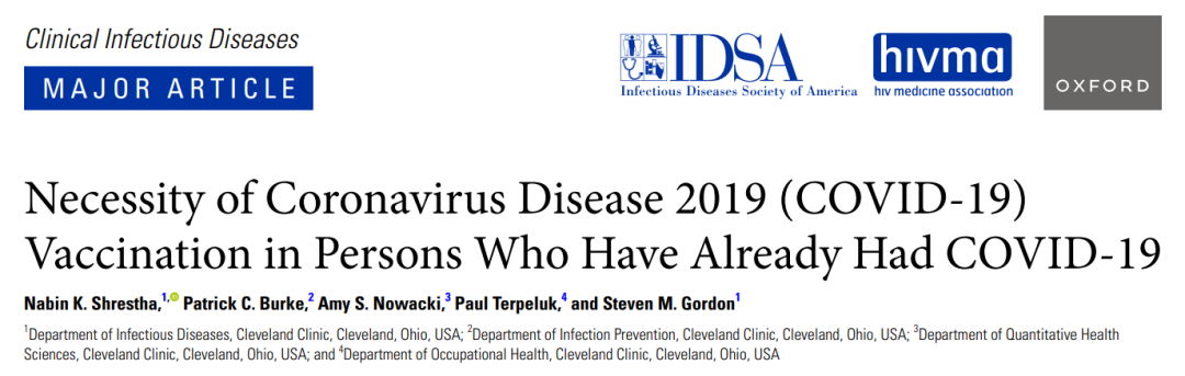 [2] Nabin K Shrestha,et al. Coronavirus Disease 2019 Vaccine Boosting in Previously Infected or Vaccinated Individuals, Clinical Infectious Diseases, Volume 75, Issue 12, 15 December 2022, Pages 2169–2177.