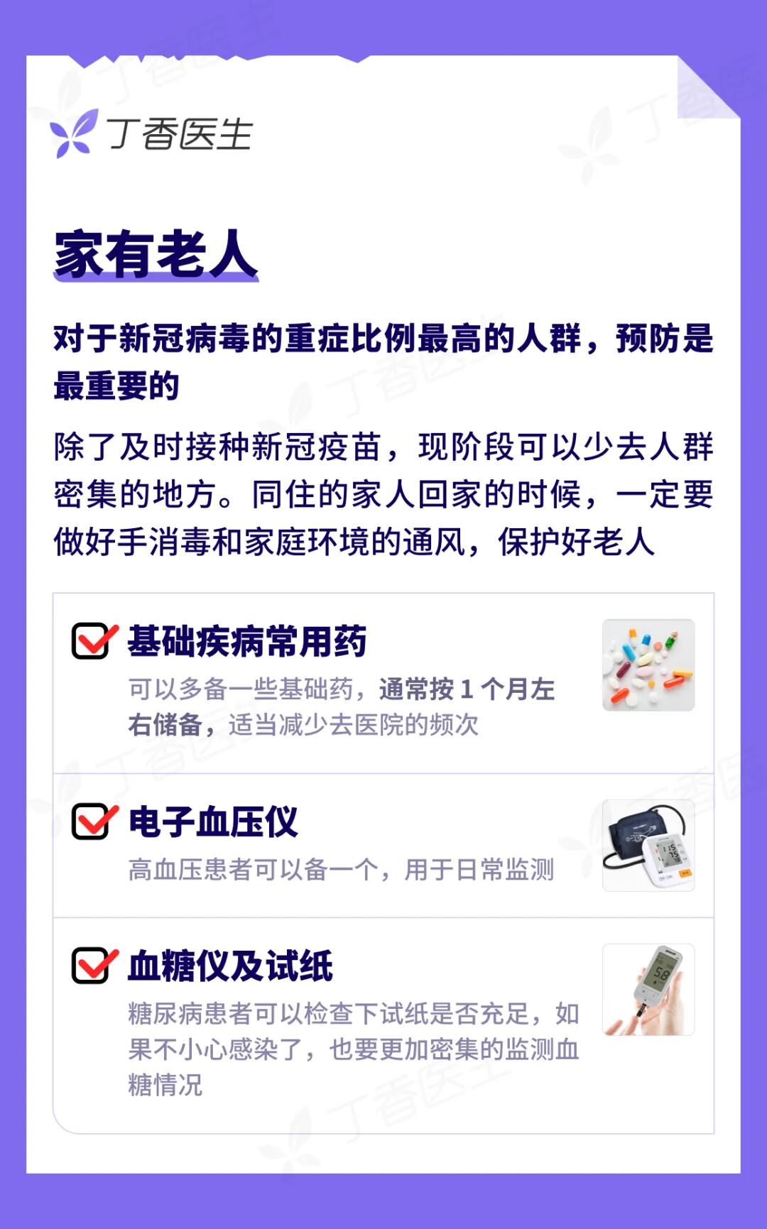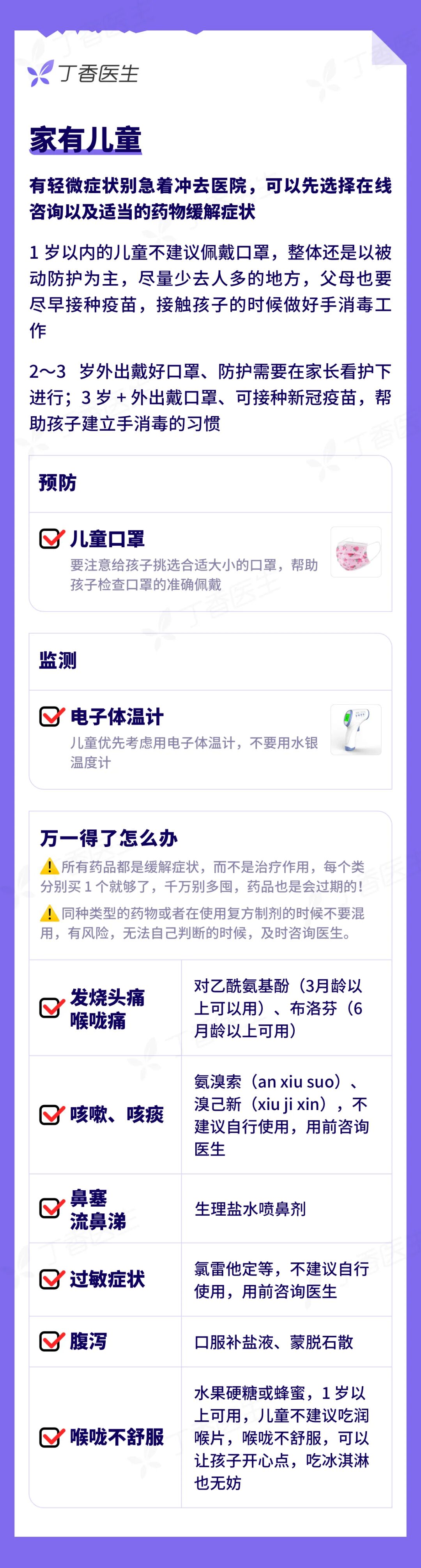 对于家里有特殊人群的,比如老人、小孩、孕妇的,可以考虑额外参考以下清单购买: