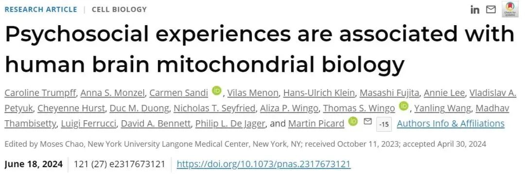 线粒体是细胞的“能量工厂”,负责生产细胞所需的能量分子ATP。当线粒体受损时,其代谢功能会下降,从而影响细胞的正常生理功能。研究表明,心理压力和负面情绪会导致线粒体代谢功能下降。根据发表在《美国国家科学院院刊》(PNAS)上的论文,社会心理评分越低(即负面情绪越高),大脑背外侧前额叶皮层线粒体的氧化磷酸化复合物含量越低,这表明线粒体的代谢功能受到了影响。