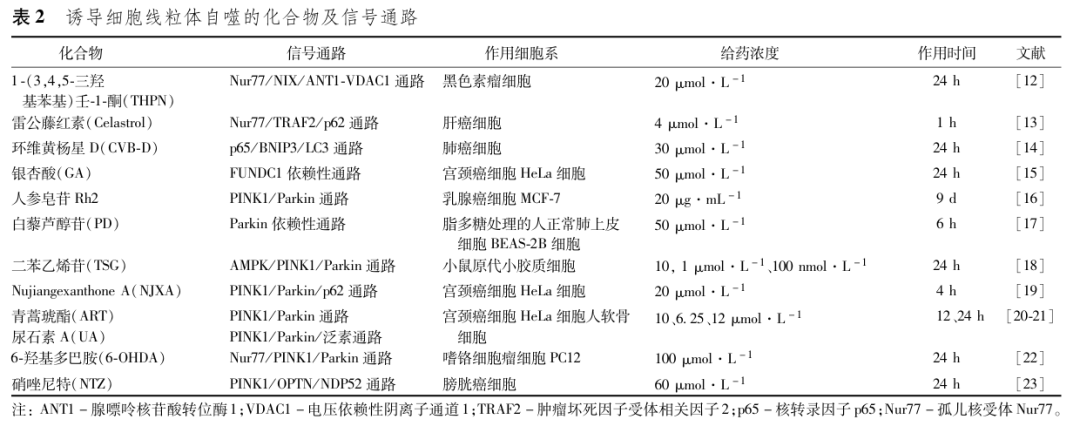 变,癌症和衰老等疾病有关。因此,一些被证明可调节线粒体自噬的天然或人工合成的化合物可能具有潜在治疗前景。