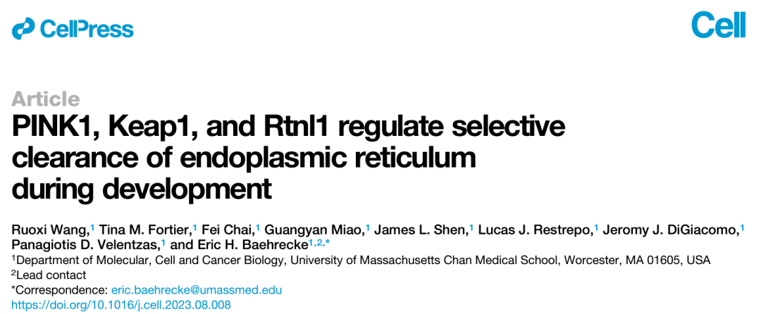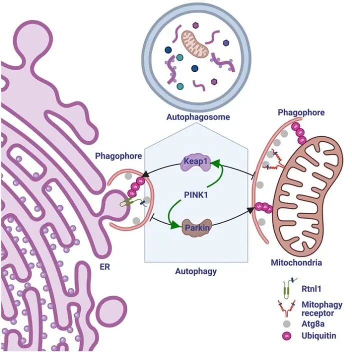 研究发现,PINK1能够影响Keap1在线粒体的定位和表达,而Keap1是ER-phagy受体Rtnl1泛素化所必需的。