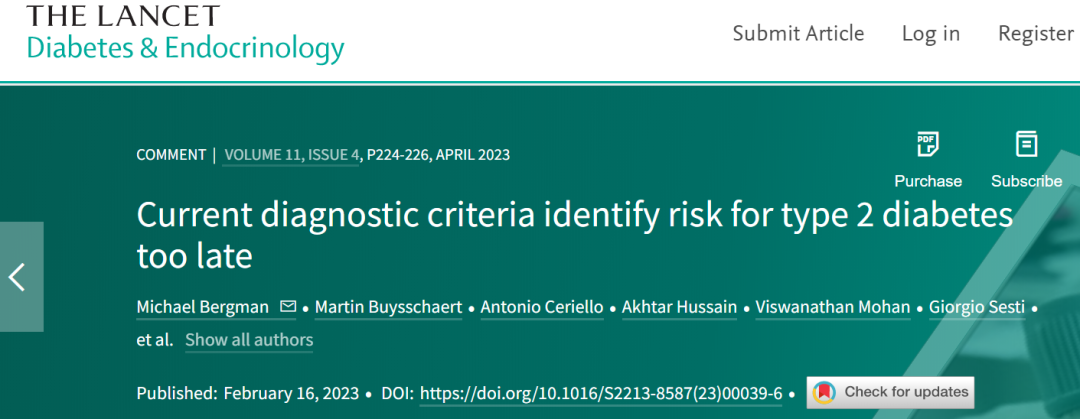 [1] Michael Bergman et al. Current diagnostic criteria identify risk for type 2 diabetes too late. The Lancet Diabetes & Endocrinology. Doi: 10.1016/S2213-8587(23)00039-6