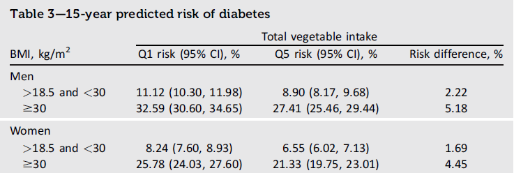 蔬菜摄入量与2型糖尿病的关系
