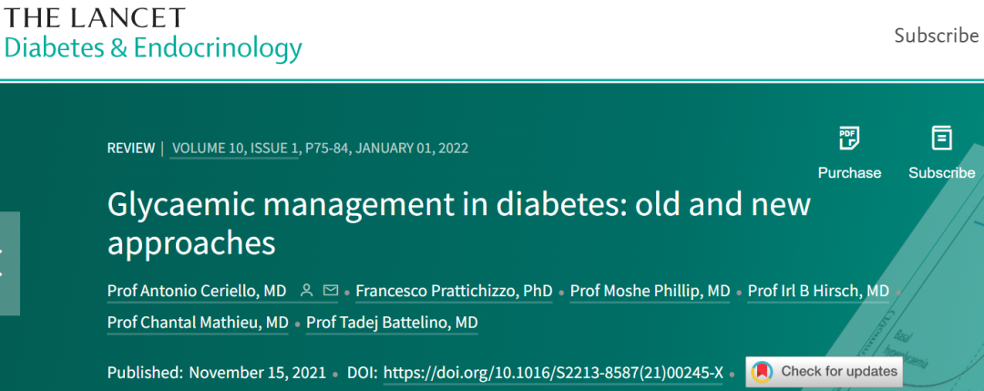 [1] Antonio Ceriello, Francesco Prattichizzo, Tadej Battelino, et al.(2021). Glycaemic management in diabetes: old and new approaches. The LancetDiabetes & Endocrinology. DOI:https://doi.org/10.1016/S2213-8587(21)00245-X