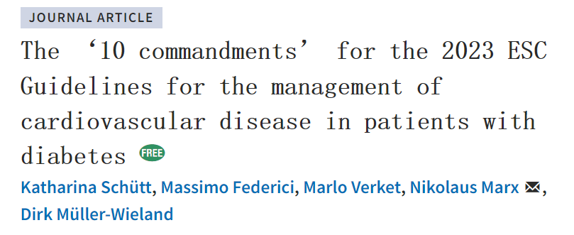 近期,European Heart Journal发表了关于“2023年欧洲心脏病学会(ESC)糖尿病患者心血管疾病管理指南的‘十诫’”,该内容主要关注两个方面,即:进行心血管风险评估及筛查;针对T2DM合并CVD患者,采取以循证医学为基础、以人为本的治疗策略。