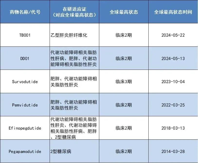 据公开资料,目前处于活跃研发状态且已经进入临床2~3期的GLP-1/GCG双重受体激动剂共有6款,以期为患者带来更多治疗新选择。