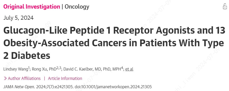 [1] Wang L, Xu R, Kaelber DC, Berger NA. (2024). Glucagon-Like Peptide 1 Receptor Agonists and 13 Obesity-Associated Cancers in Patients With Type 2 Diabetes. JAMA Netw Open, DOI: 10.1001/jamanetworkopen.2024.21305